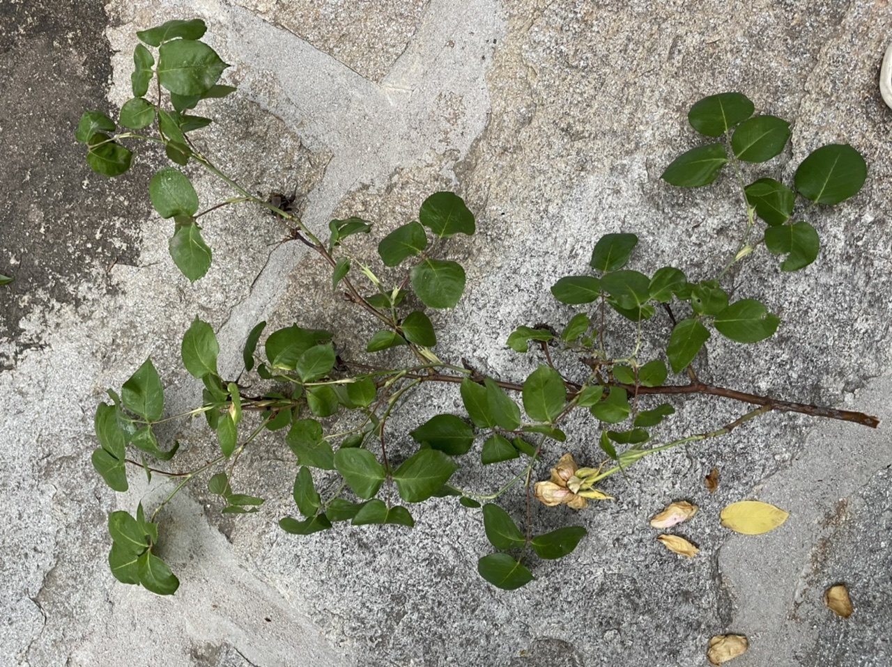 Аз се връщам от селска разходка с 2 отрязани 2 клона от 2 розови храста. Единият е от Ена уникална розова едра роза, другият от една дива, която ме плени. Има цвят.