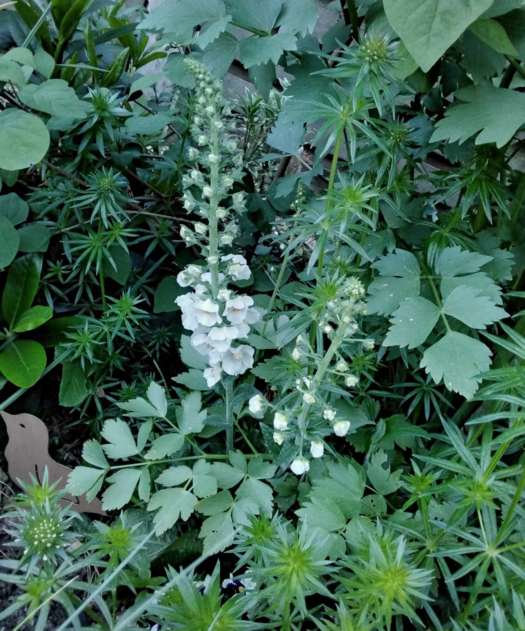 Непетата в пълен цъфтеж и един неразцъфтял вербаскум