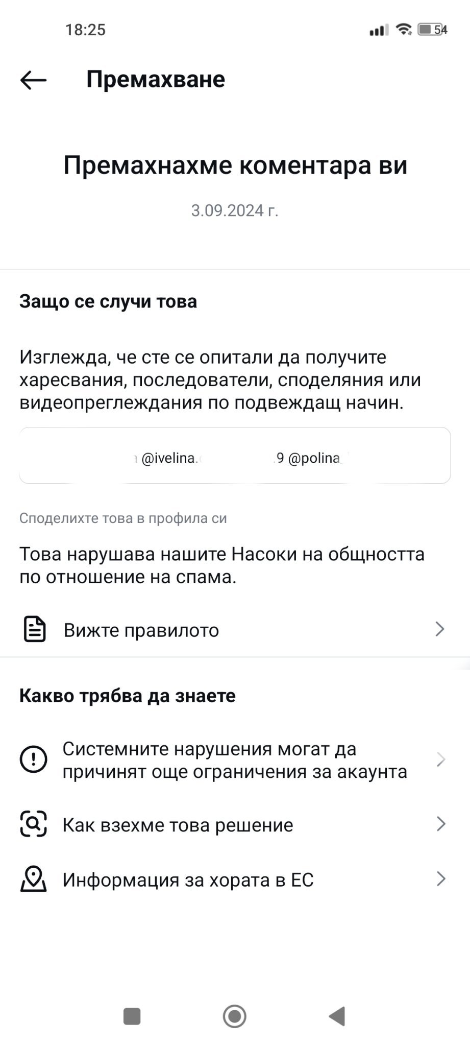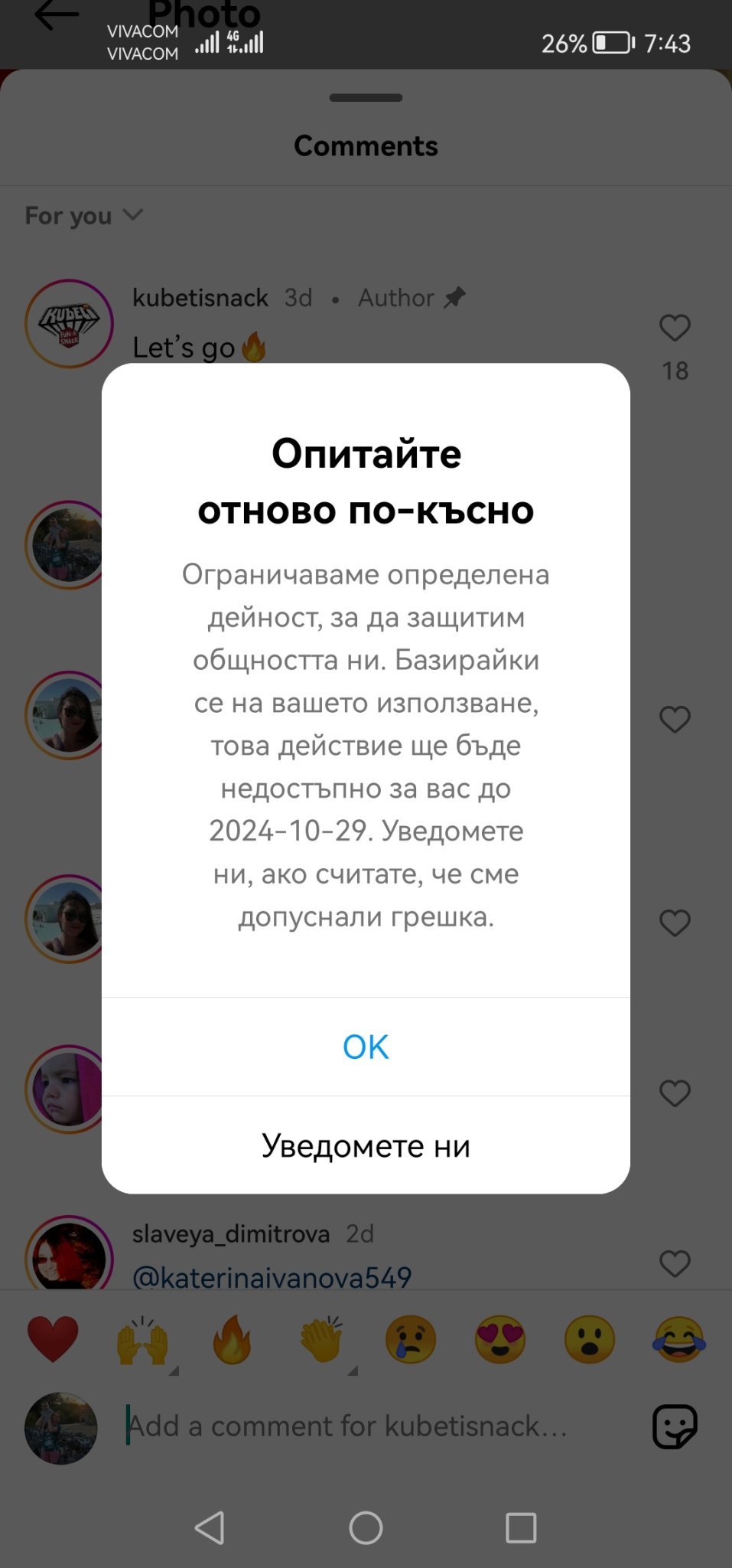 Здравейте. Имам проблем с Инстаграм. Ползвам го главно за да участвам в Giveaway игри с тагване на приятели. Инстаграм постоянно ми трие коментари и ме ограничава да не тагвам за определено време. Мога ли да направя нещо?
