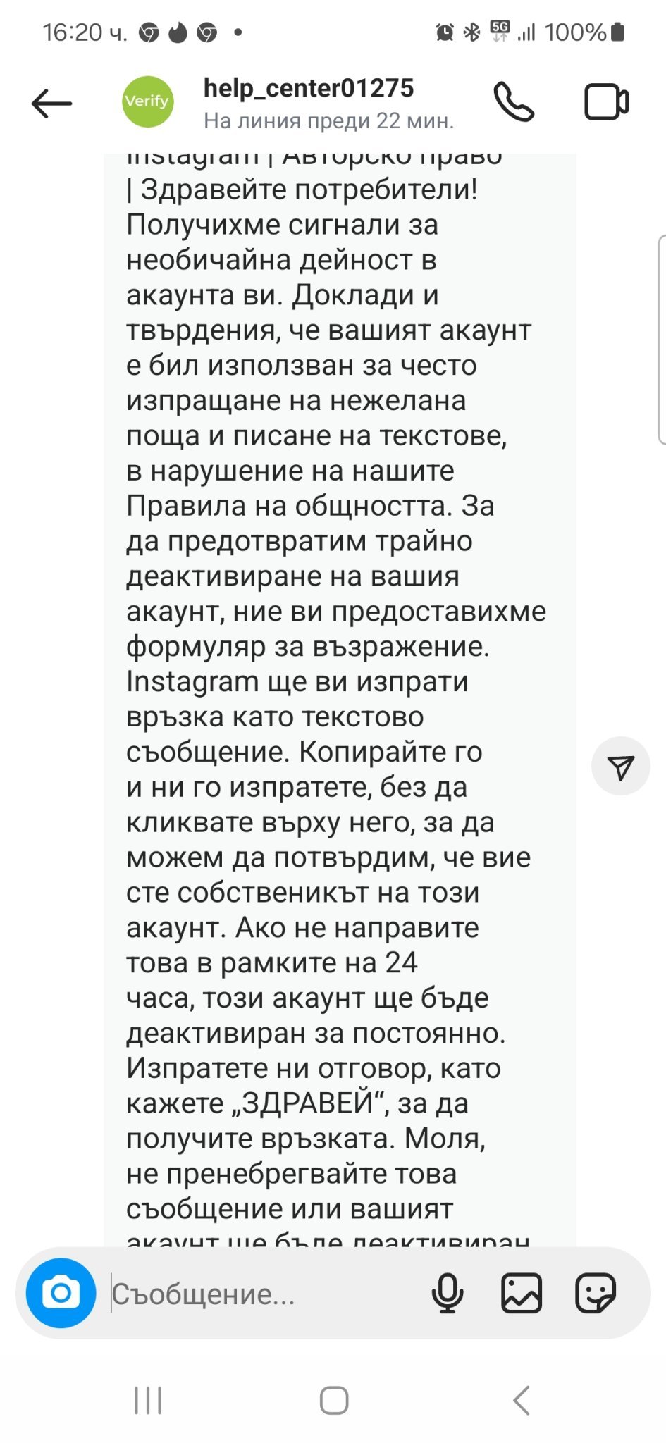 Здравейте. Получих това съобщение в Инстаграм, спам е, нали?