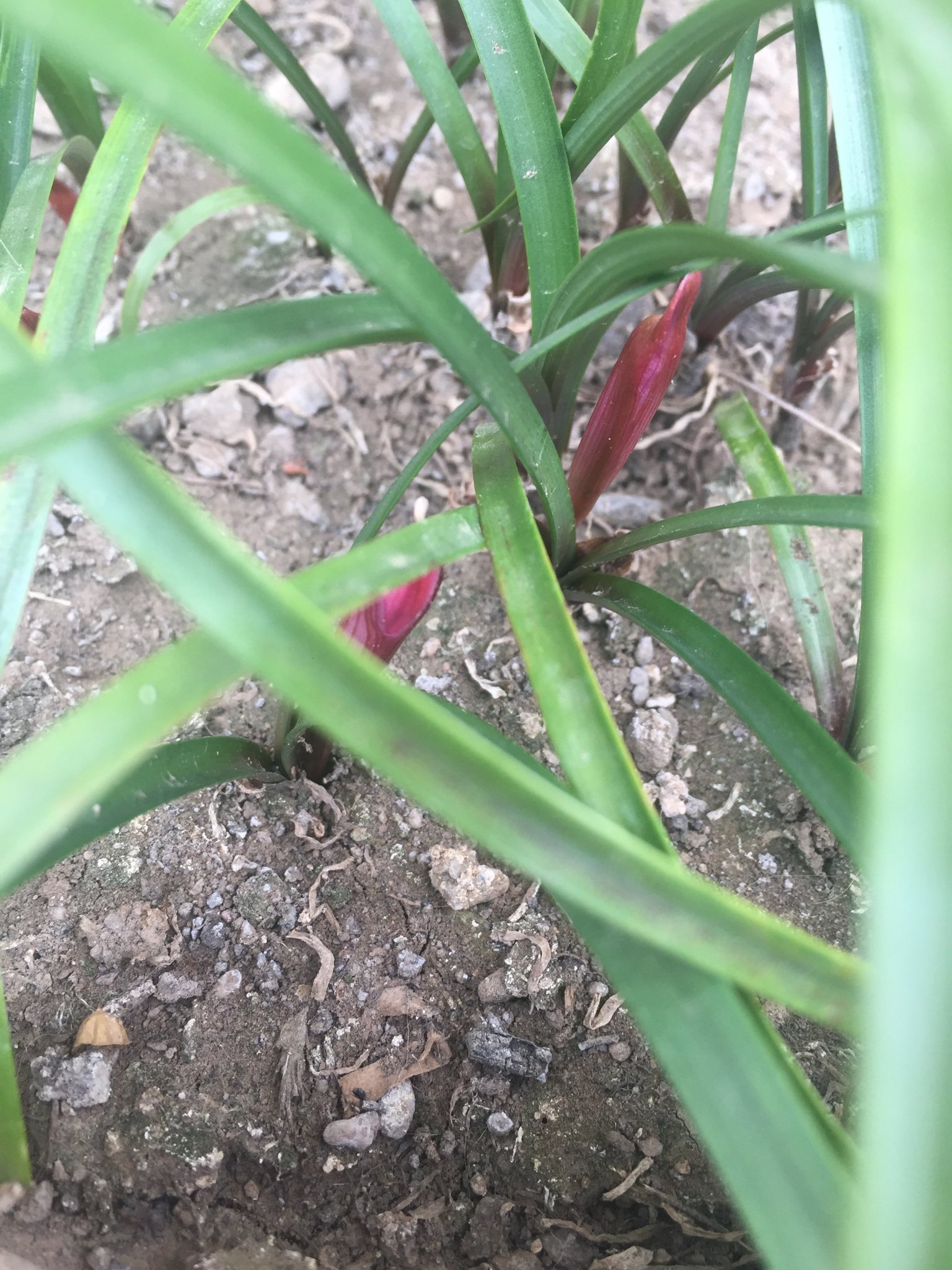 това, което се готви да цъфти е зефирантес. луковично, спи зимата. при нас си иска да е прибрано, не знам, някъде може да издържа и навън.