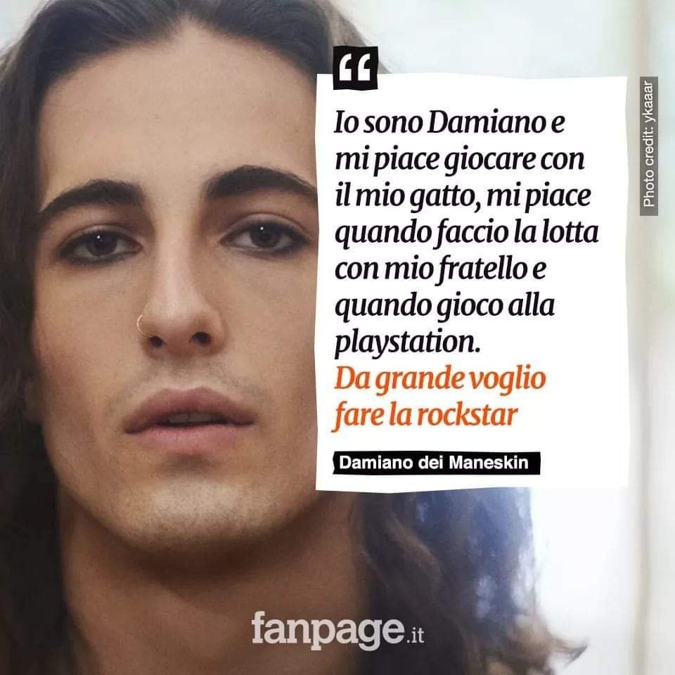 "Казвам се Дамиано и обичам да играя с моята котка, да се боричкам с моя брат и да играя на PlayStation. Когато порасна, искам да стана рок звезда."