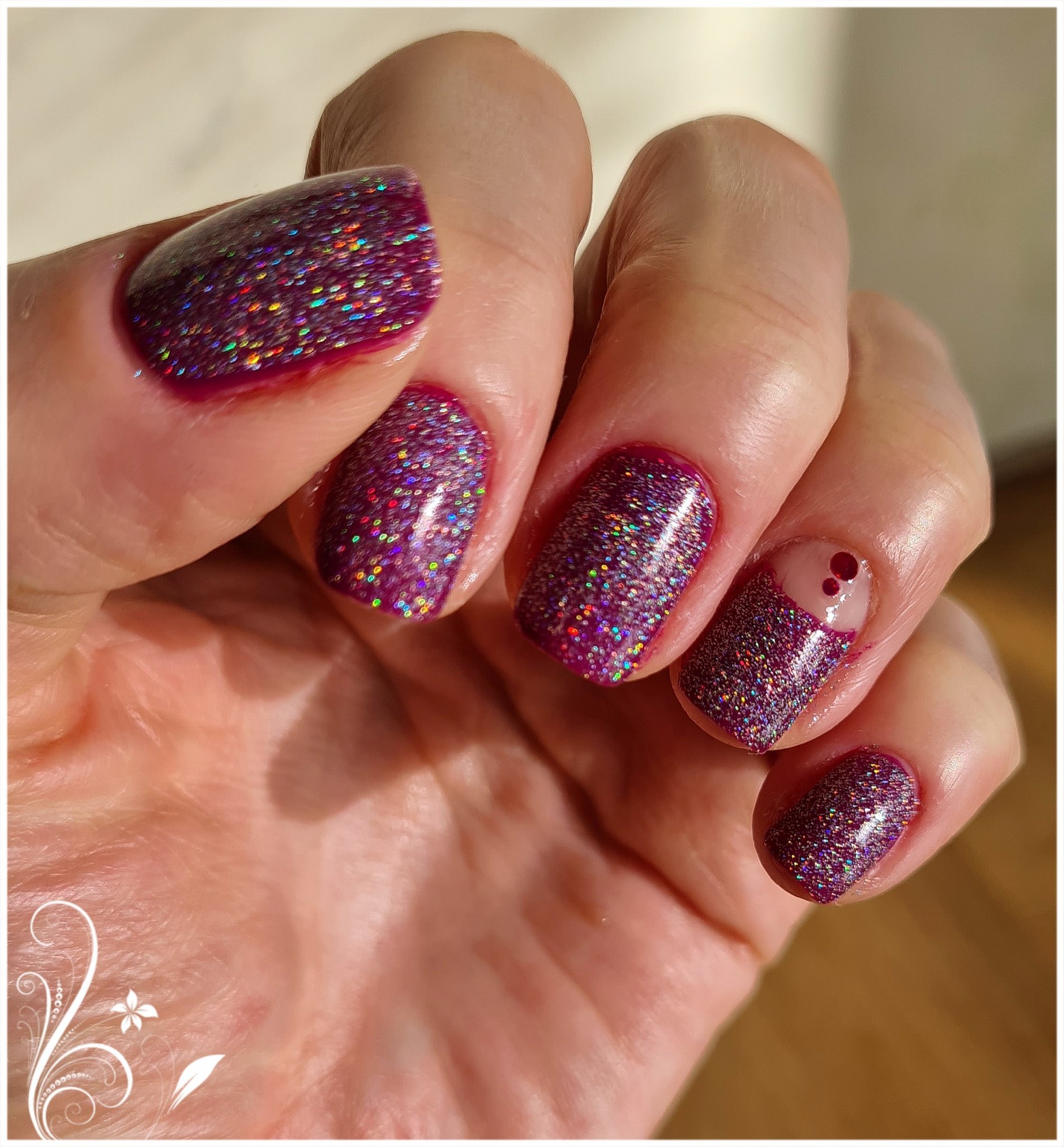 Момичета, ето моята версия на среднощната ми любов 😁 Една идея по - студен подтон и е доста подобно 😁 Основата е на Пастел, я отгоре у слой холограм на Флормар от глитер  серията, макар моето шишенце да е старо и си е само с логото на Флормар