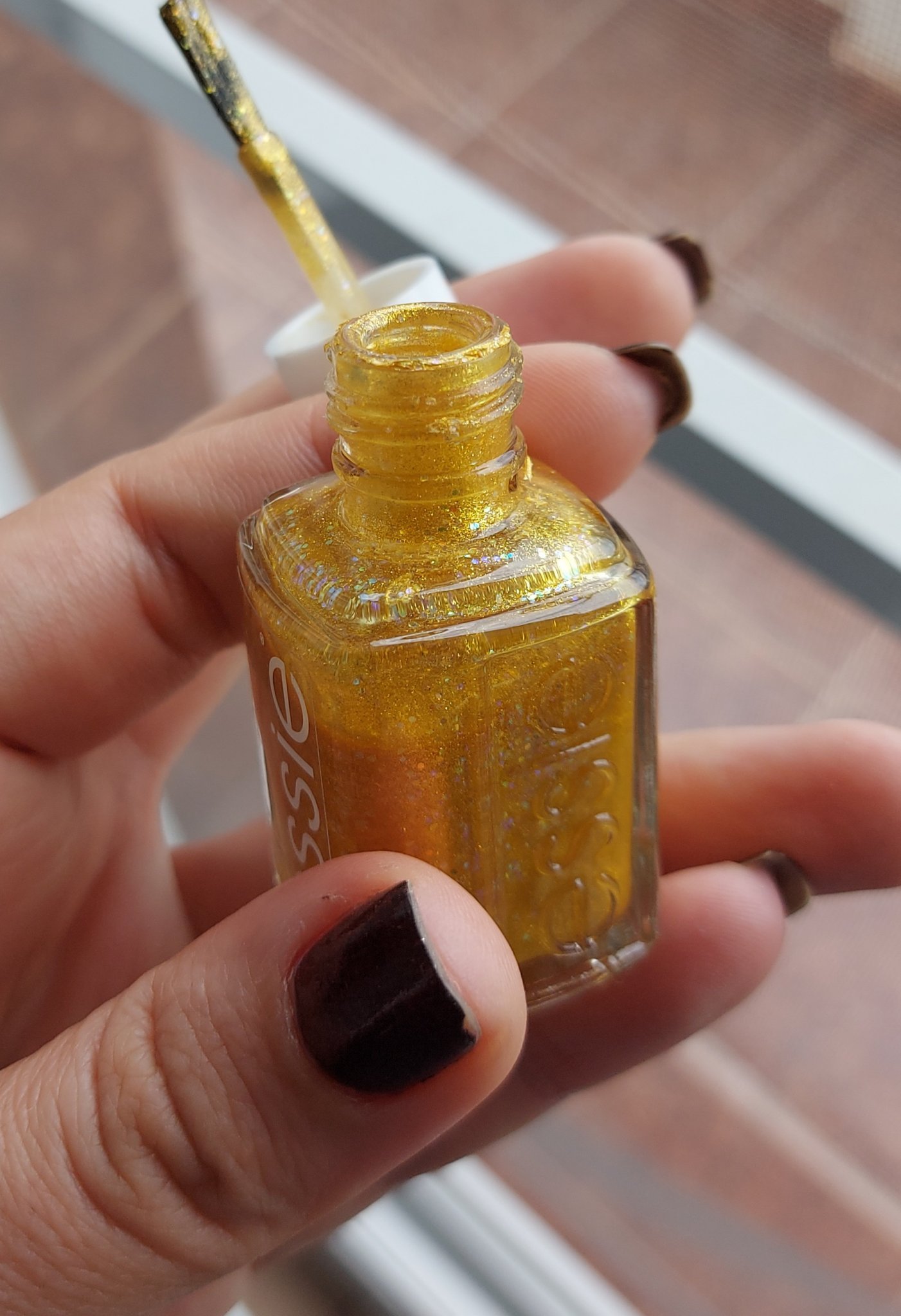Първи лак на Еси. Хареса ми четката. Покрива на 2 слоя. Първият изсъхна за секунди, без топ лак и/или изсушител.