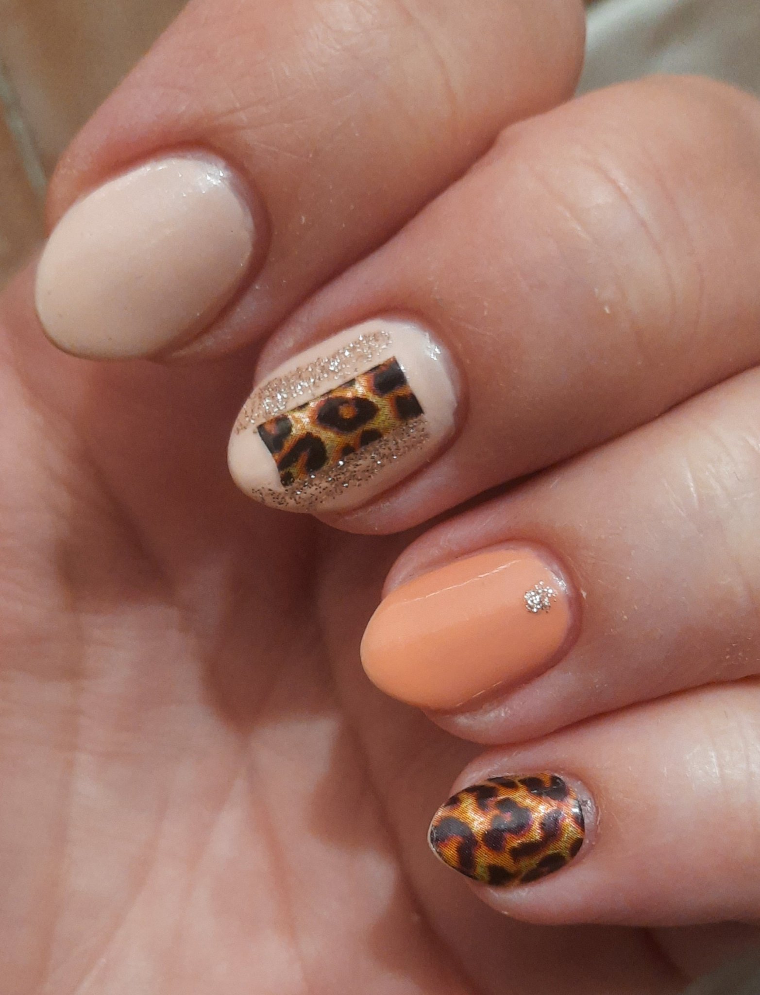 Дали ще е голям кич да оставя леопардовото фолио на кутретата (искам да видя колко още ще издържи) и да лакирам другите нокти с 2 нюанса синьо (светъл син неон+ по-тъмен нюанс- Бел 51)? 😄🤔 Иначе мога да сложа нещо в оранжевата гама...