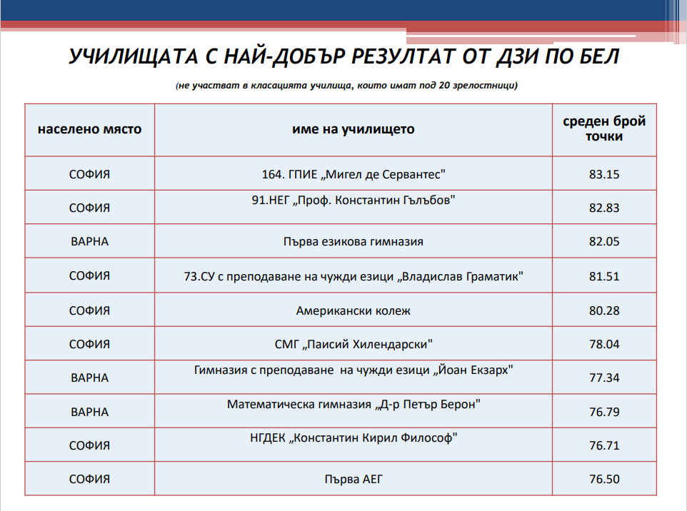 лесната математика срещу лесния английски. Подозирам обаче че средните резултати ще са над 90т.
