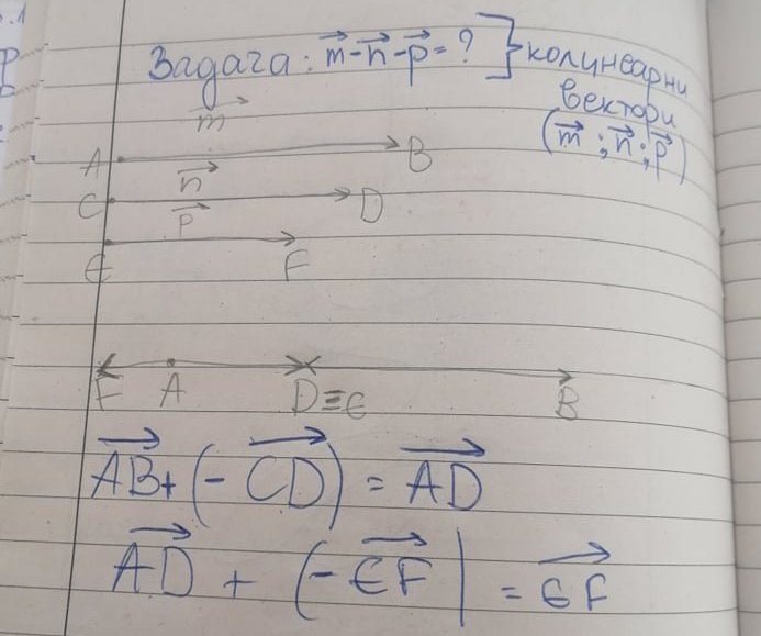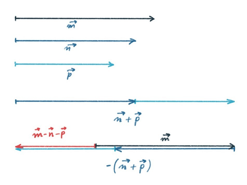 Векторите могат да се сметнат като m - n - p = m - (n + p) и графично да се изобразят така: