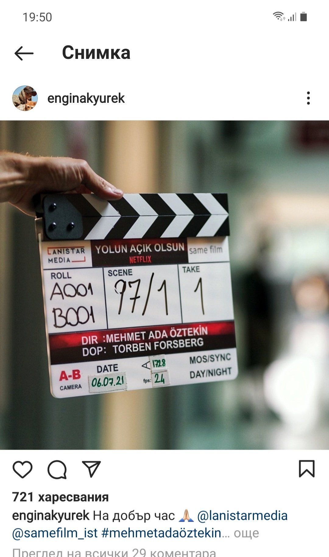 Развълнувани и щастливи сме да започнем да снимаме филма за Netflix, режисиран от Мехмет Ада Йозтекин, с участието на Енгин Акюрек и Толга Саръташ. Успех/На добър час!