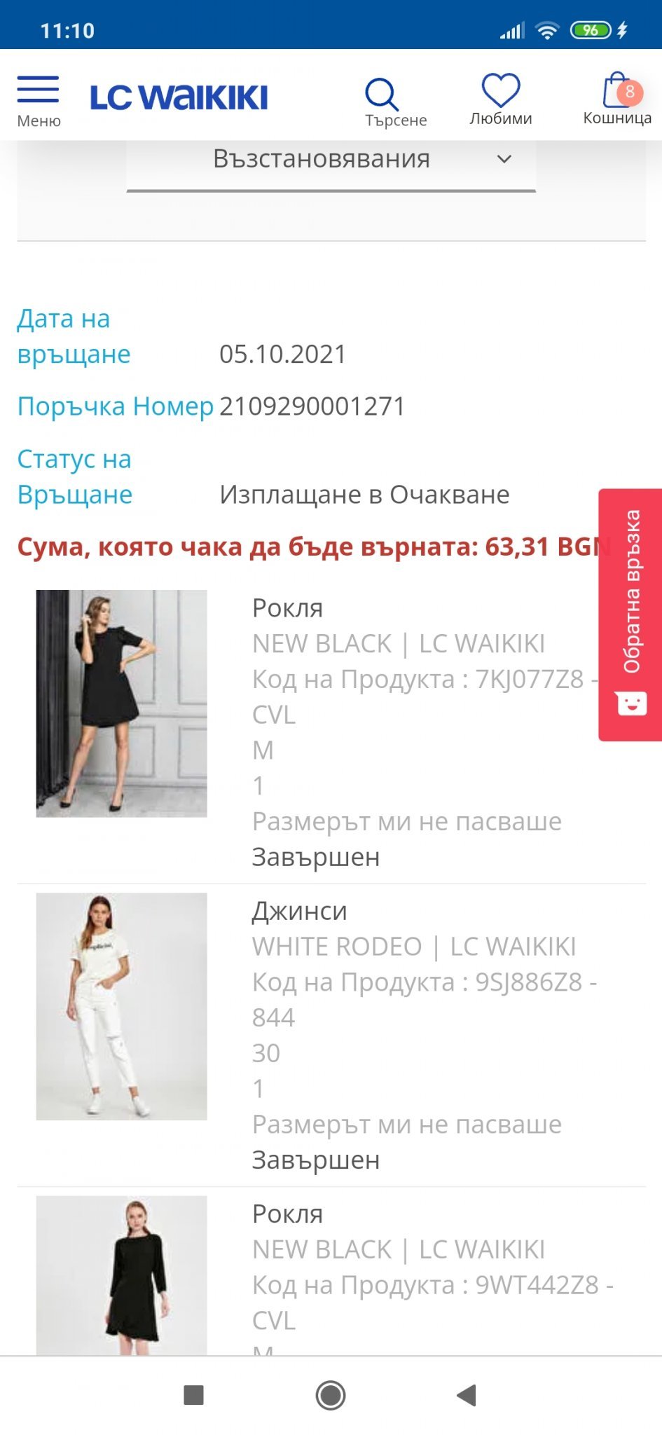 Как мога да възстановя парите в профила си след връщане на поръчка?