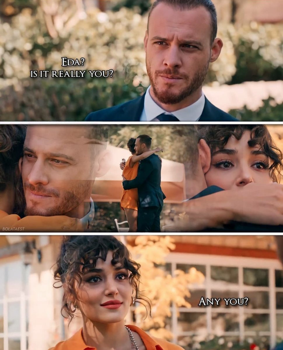 Да ви кажа заради поведението на Енгин си мисля, че и Еда не е била особено невинна при раздялата им със Серкан. Струва ми се, че Енгин този път не подкрепя Еда и връзката на Серкан с нея. Знаем Енгин колко много обича и държи на Серкан, следователно като негов най-добър приятел му желае доброто. Вероятно Еда е направила или казала нещо, което е наранило много Серкан в миналото. Енгин знае за случилото се и затова сега реагира така. Защото разликата в държанието му е очевидна. Досега винаги е заставал зад Еда и е подкрепял Серкан да се бори за нея. Съветваше го да говори с нея, да не се отказва от нея, отваряше му очите. Дори в историята с патента подкрепи Еда и каза на Серкан, че бърка. Въобще никога досега не е заставал срещу Еда... А сега го съветва да каже "довиждане" и да си продължи с живота. Има нещо гнило... Wink