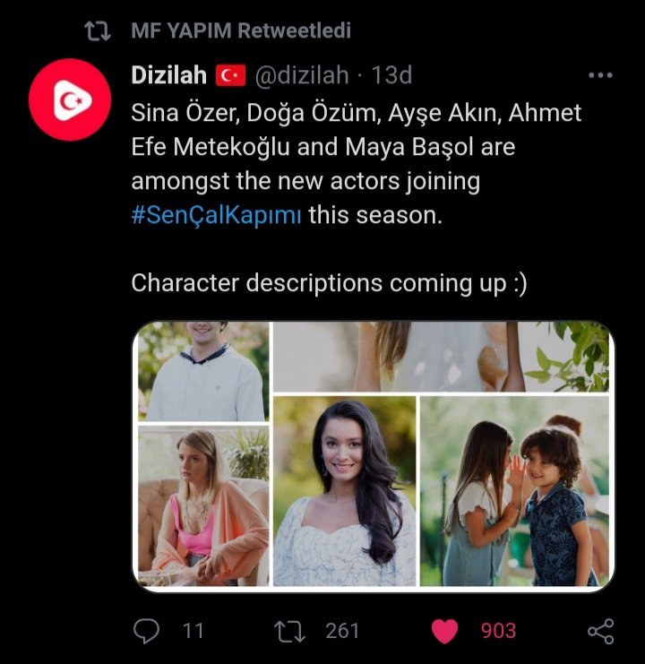 Сина Йозер, Доа Йозюм, Айше Акън, Ахмет Ефе Метекоолу и Мая(за която знаем отдавна).🎉 Все още в сайта на Fox няма информация за героите им.