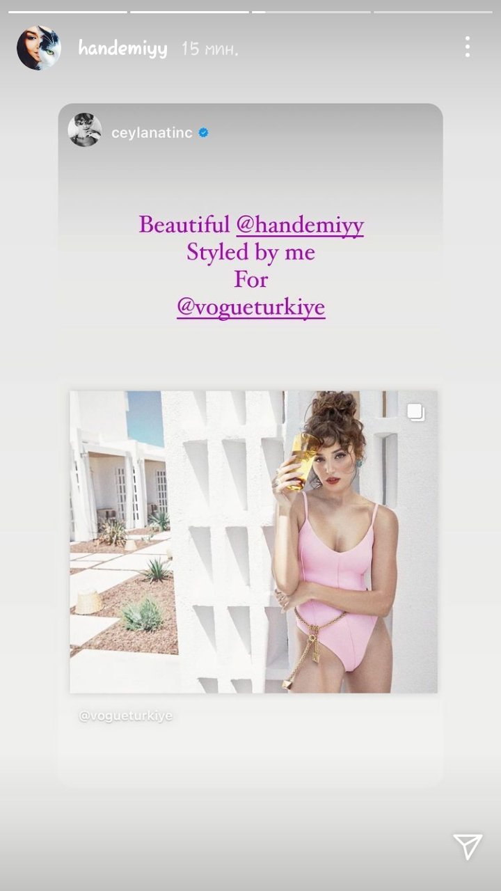 Като гледам снимките на Ханде за Vogue си спомних, че тя има през 2012 г. участие в конкурса „Miss Civilization of the World“, проведен в Баку, където заема второ място в света. Красивица от световна класа!