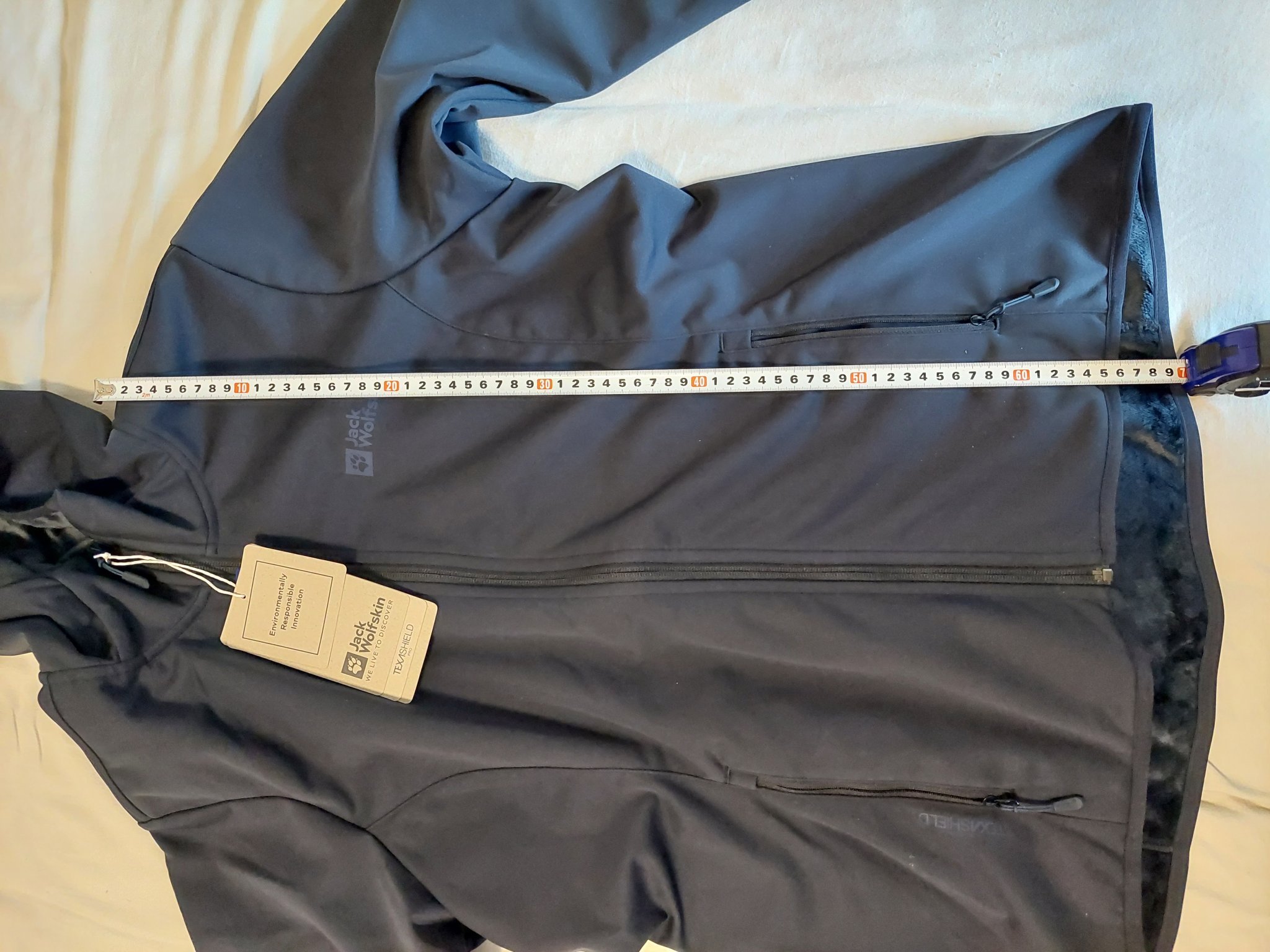 Две софтшел якета - мъжко и дамско, на Jack Wolfskin. Много са хубави, но се оказаха големи. Цветът е тъмносин и за двете.