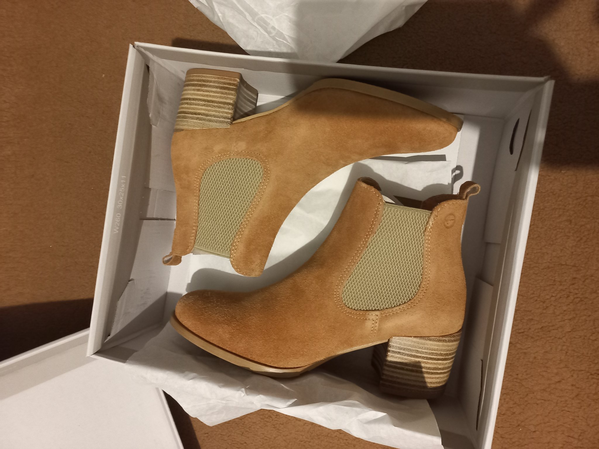 Боти Tamaris, N 38 https://www.amazon.de/-/en/dp/B09FKCWDFH?ref=ppx_yo2ov_dt_b_prod … etails&th=1&psc=1 - естествен велур, за тесен крак, може би са идея умалени, защото ми опира пръста отпред.