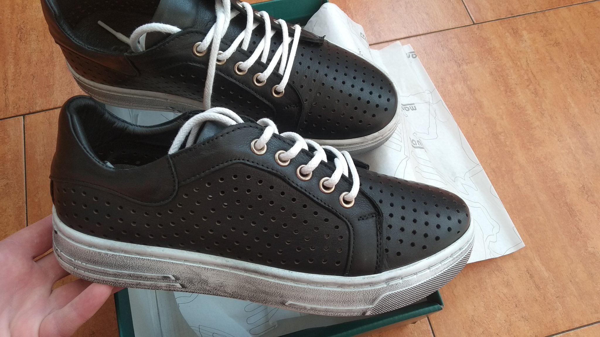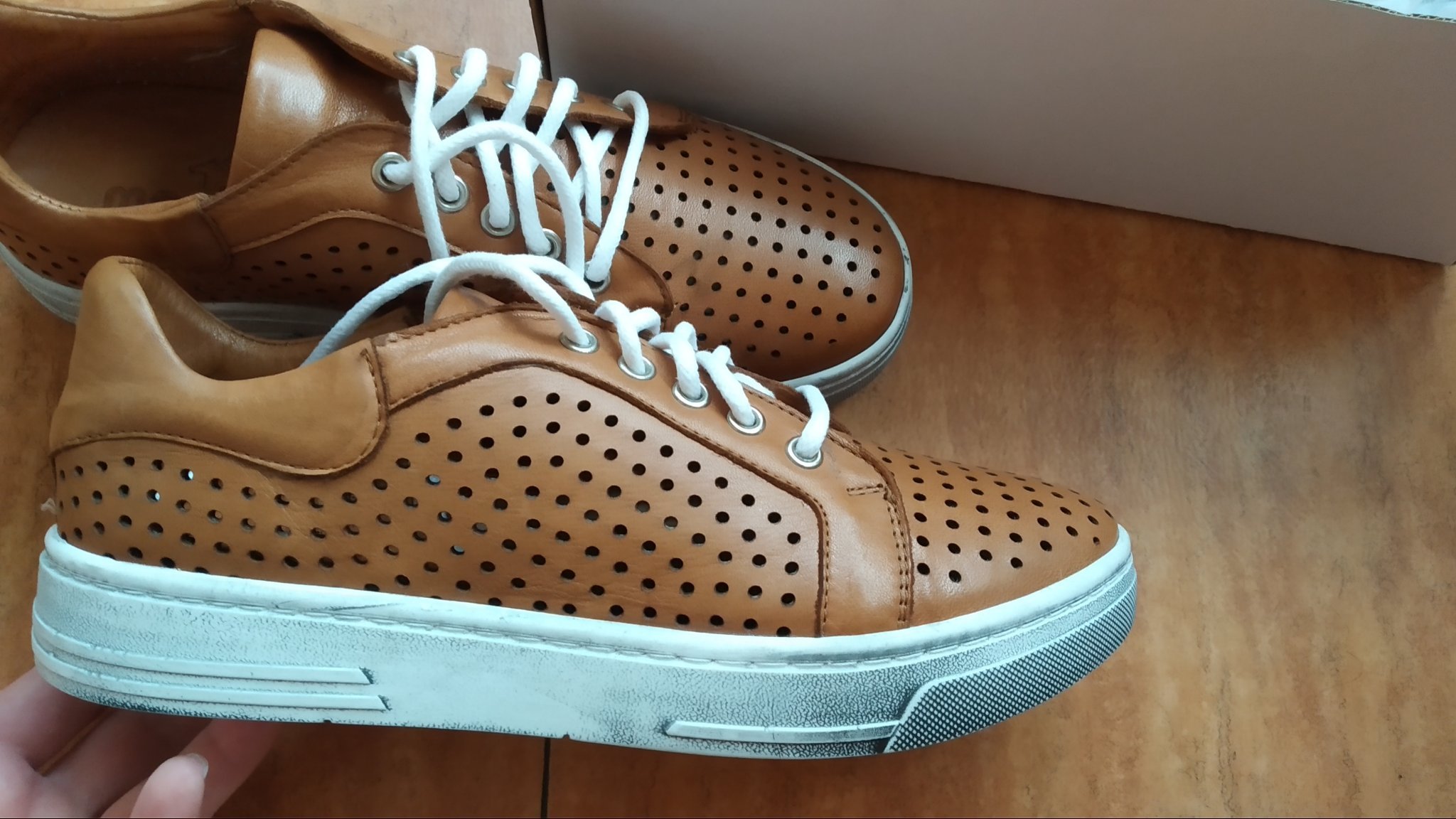 Дамски спортни обувки на немската марка Manitu, естествена кожа отвън и отвътре, 38 номер, дължина на стелка 24.6 см. Отговарят си на номера, много меки и удобни. Перфорирана кожа, стават за лято и пролет.