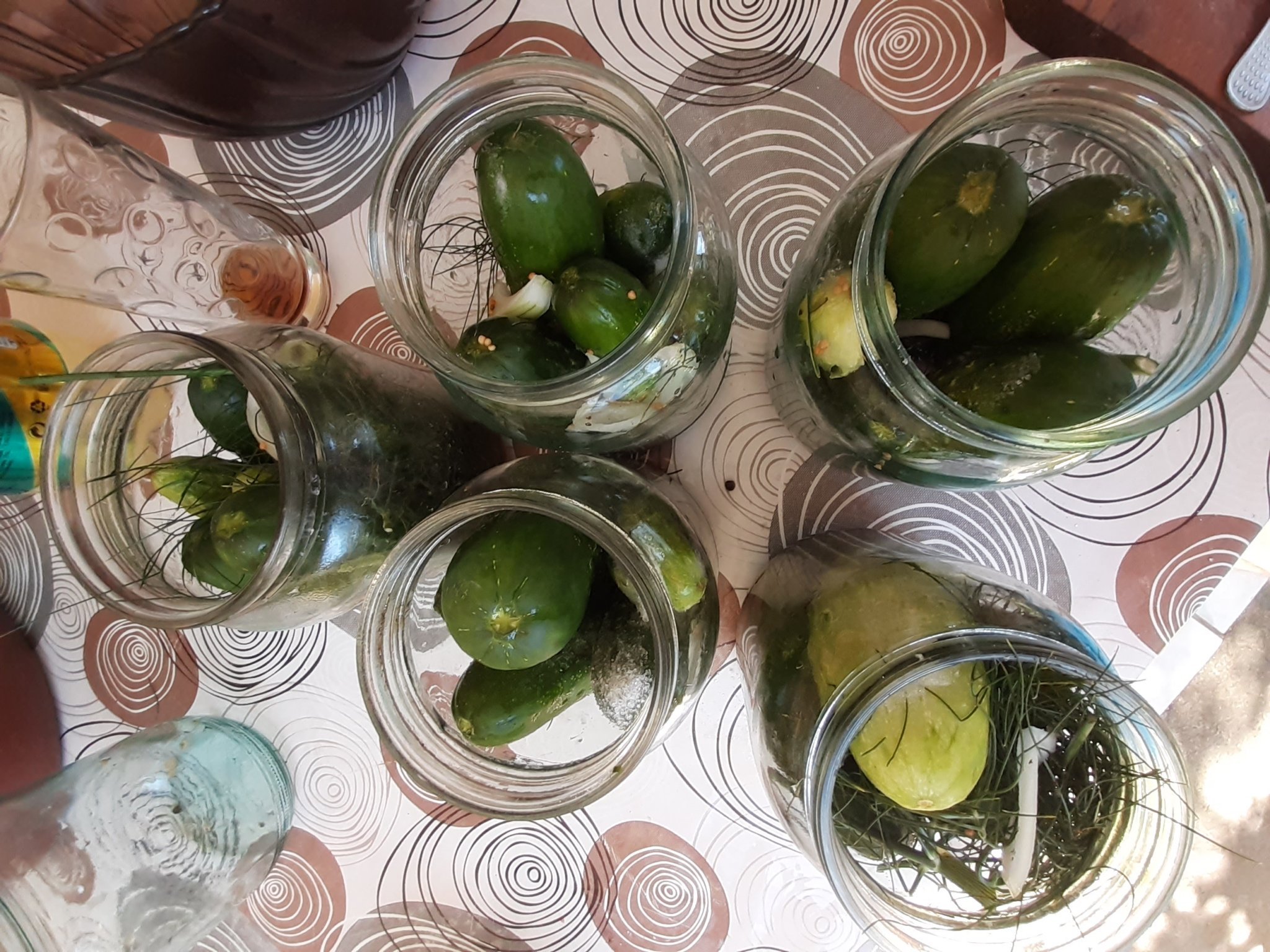 И нашата градина не е в цветущо състояние, но съм доволна като цяло. Много хубав кромид и чесън извадихме. Доматите също се отчитат добре, макар че едвам ги опазваме от миризливките. Вчера сложих 12 буркана.  Тиквичките са ок. Има и изгнили, има и изсъхващи, има и доволно за нас. Краставиците заминаха, буквално за една нощ. Картофите също тръгнаха на зле и се наложи да ги извадим. Дано само успеем да ги съхраним.