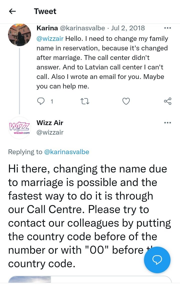 Малтийският номер не е актуален, на стационарния бг ме отряза някакъв кретен, че случаят ми не е спешен (писах за това тук), на мейлите никой не отговаря, пуснах иск в сайта, но ми искаше задължително номер на резервация, каквато аз нямам (няма и как да имам докато не ми сменят фамилията), въведох някаква си, за да ме пусне да продължа и сега предполагам като дойде време да разгледат ще ми напишат, че в системата нямам резервация с такъв номер и ще ме отвсвирят. Писах няколко пъти под публикации във Фейсбук на официалната ми страница, там са някакви абсолютни кретени, честно - супер любезно ми обясняват да се свържа с техния live chat. Обяснявам, че те нямат такъв и ми дават линк към секцията 'Какд а се свържете с нас" - ами - НЯМА лайв чат. Имаме близо 5 000 лв кредити от отменени полети, които очевидно няма как да използваме. Ако не бяха тези кредити, отдавна да съм им теглила чертата.
