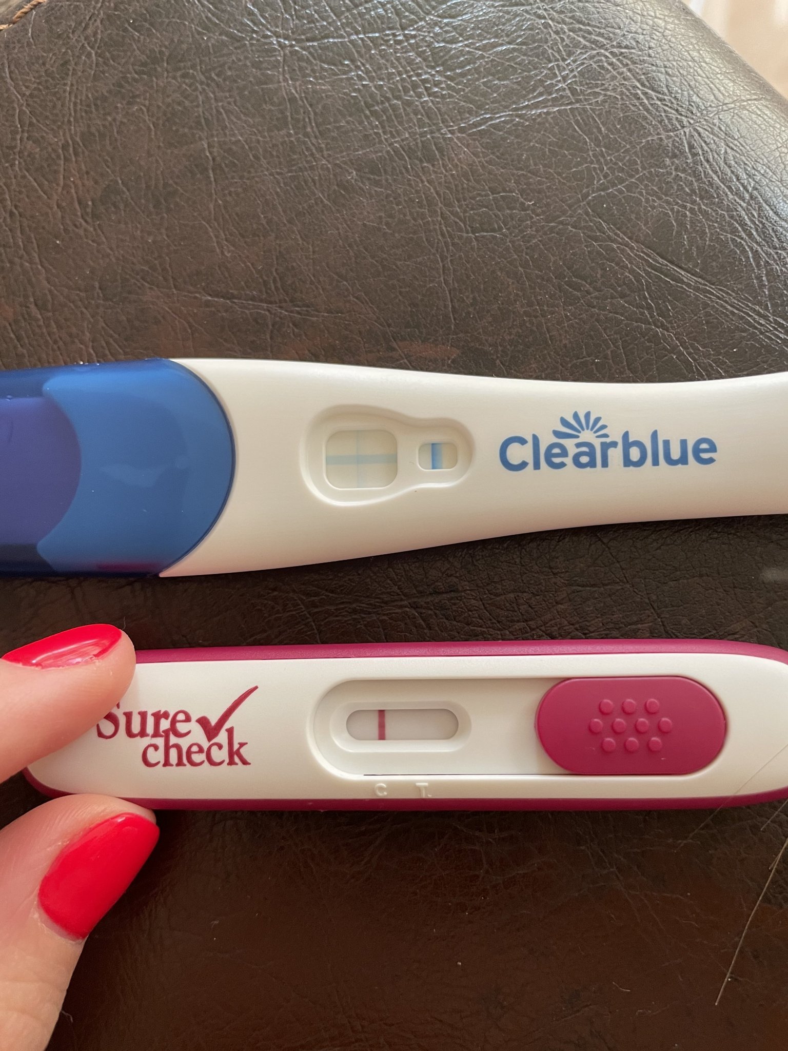 Здравейте, дами! Нова съм в сайта, исках да попитам за мнение! Днес с сутрешна урина направих 2 теста за бременност. На clearblue (за ранно отчитане и до сега на тази марка никога не съм пробвала до днес) и един shurchek. Цикъла ми е редовен, утре 13-ти трябваше да ми дойде. Прикачвам снимки, теста на surechek втората черта едвам се вижда много е бледа! Не знам, да се радвам ли? С страшно главоболие съм от няколко дни, болки в кръста, корема ниско долу.  Ще се радвам да споделите мнения и да ми дадете съвет!