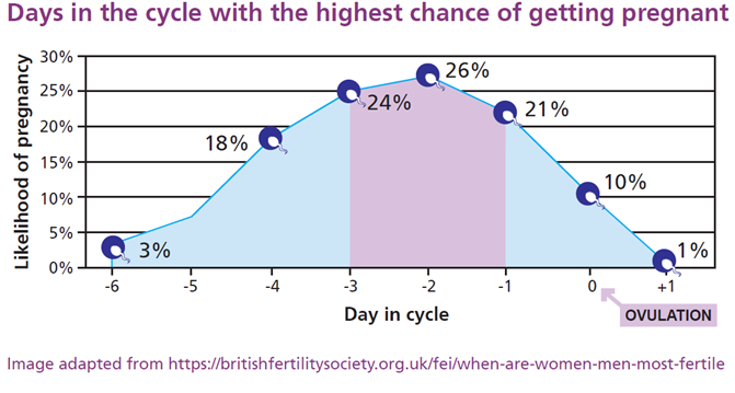 Ами моята информация е че яйцеклетката живее до 24 часа след отделянето й, така че не бих казала че шанса за забременяване следващия ден е 0%