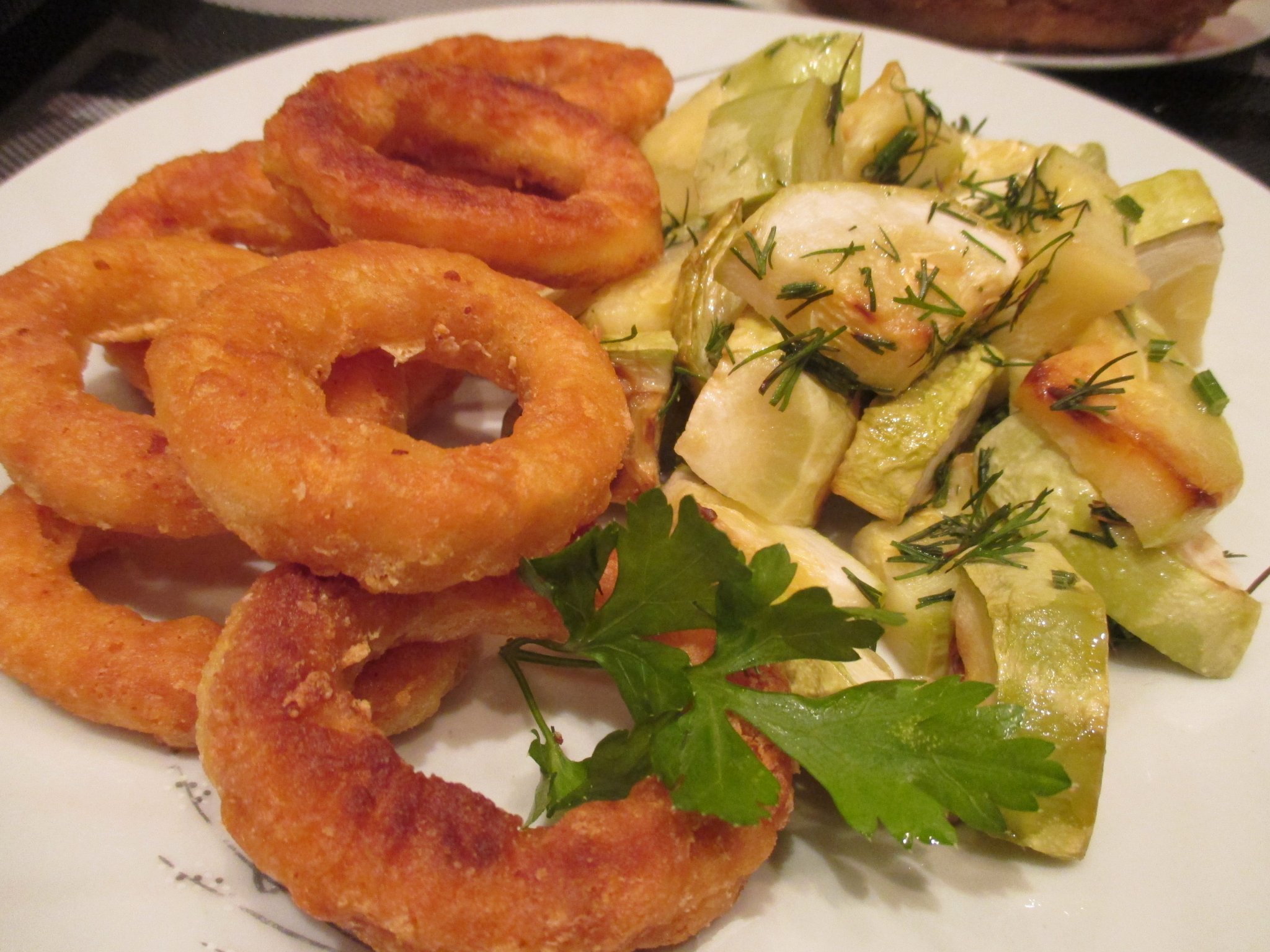 Панирани калмари и тиквички на фурна