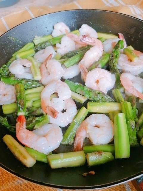 Скариди с аспержи и салатата на Мikkey