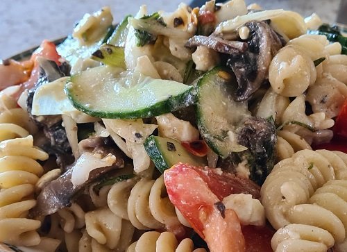 ММ беше готов само кекс да яде цял ден, обаче правих и паста с пресен зеленчук, гъби и сирене