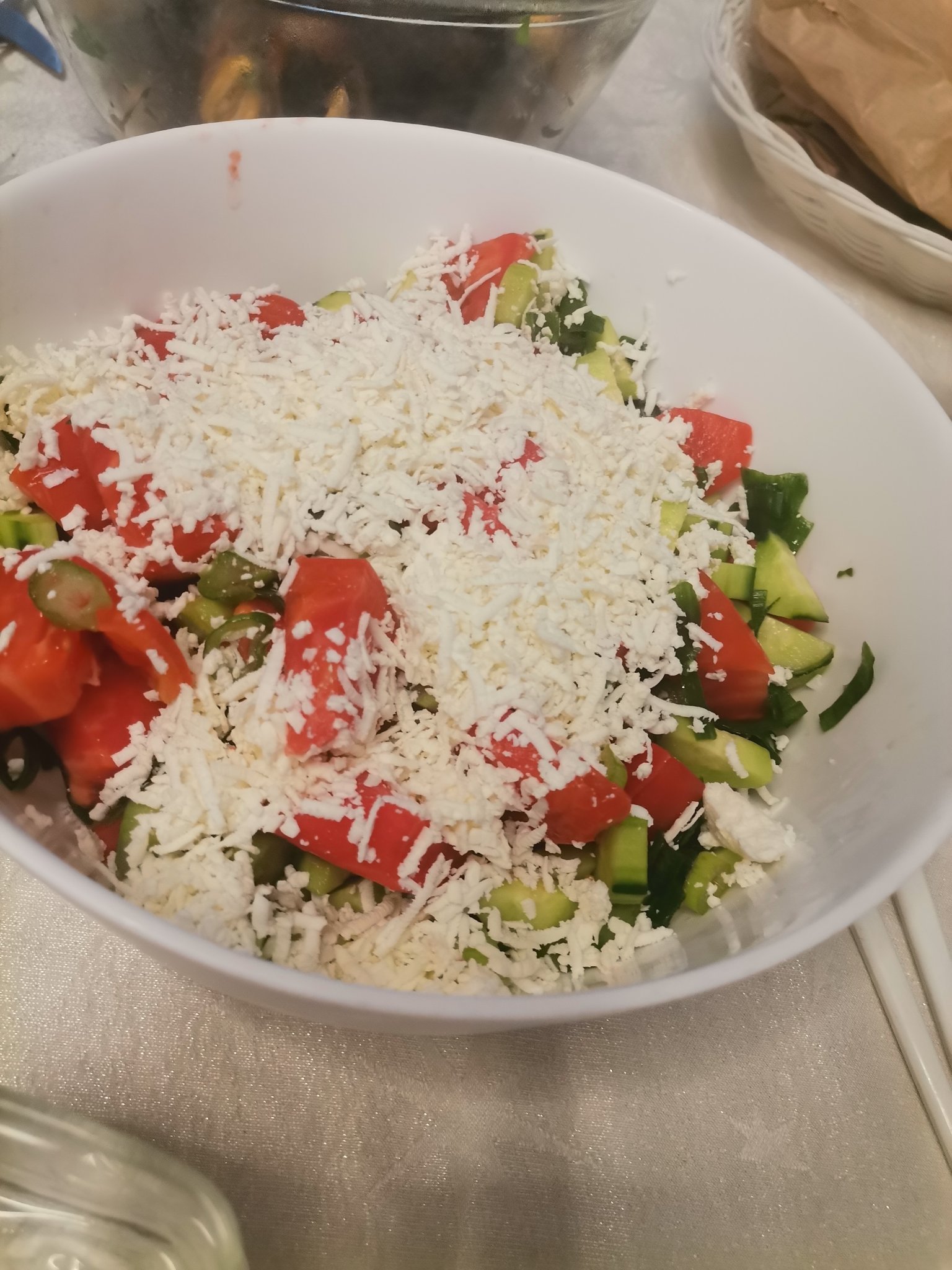 След едно дълго цензурирано отсъствие - айде пак тук. Шопска салата, уникална турска разядкa с печени чушки и миди.