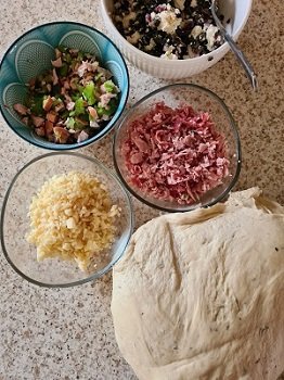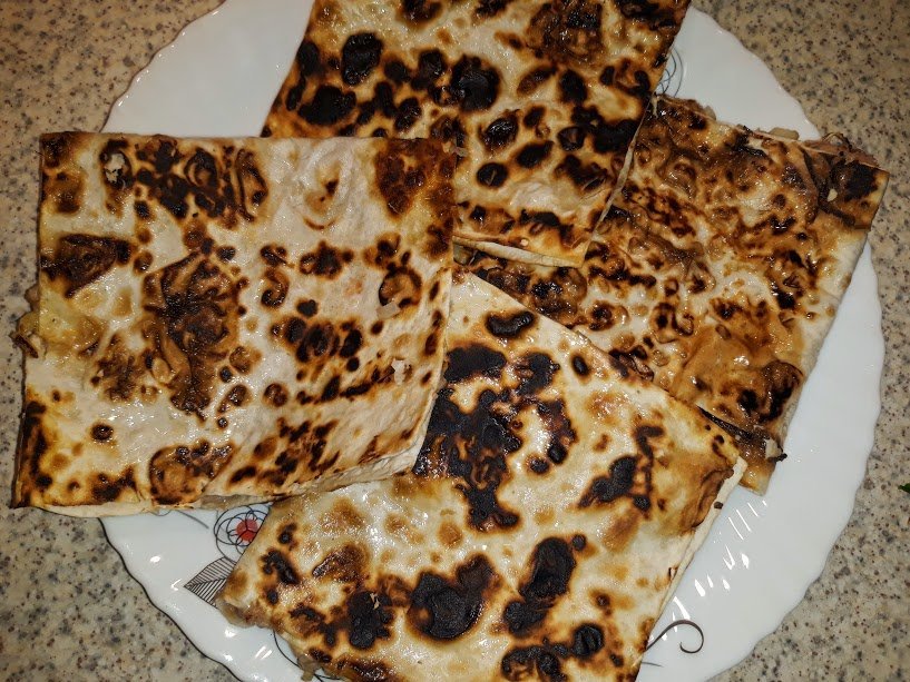 Лаваш с кайма на тиган. Бързо, лесно, вкусно. Вчера си правих онази разядка, със сиренето и киселото мляко, с гръцкото име.С хрупкав, топъл хляб много върви.