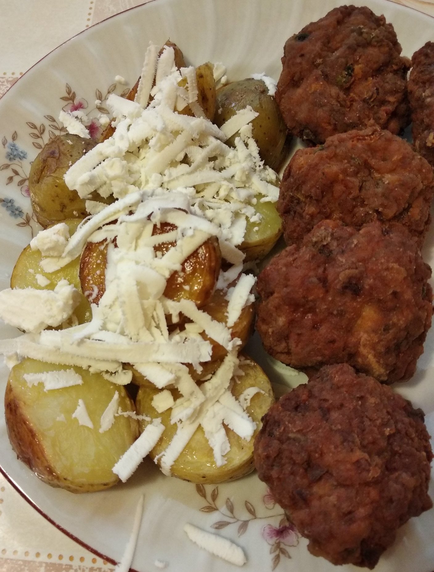 Днес реших, нали след хляба фурната е гореща, да изпека кюфтетата с картофи там.Ей, тоя кашкавал какъв е, след час печене и 20 мин. под горен реотан, не се изпече изобщо.