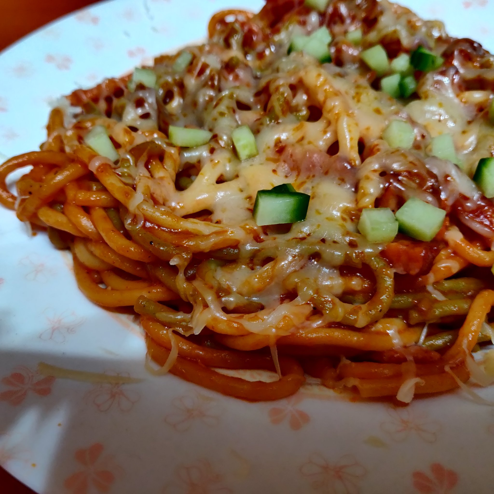 Спагети с пушено, пачи крак, доматен сос и кашкавал