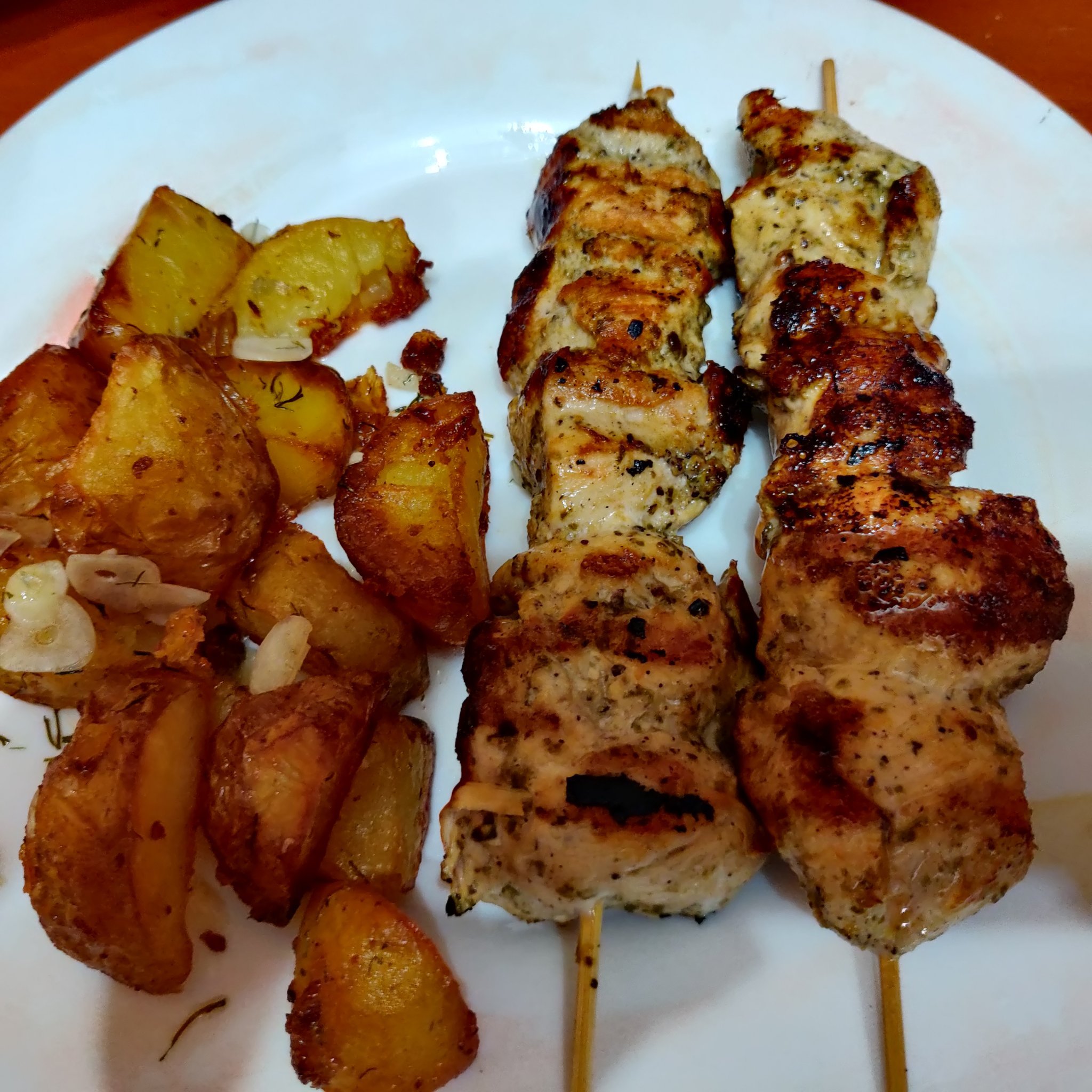 Пилешки шишчета, картофи на фурна