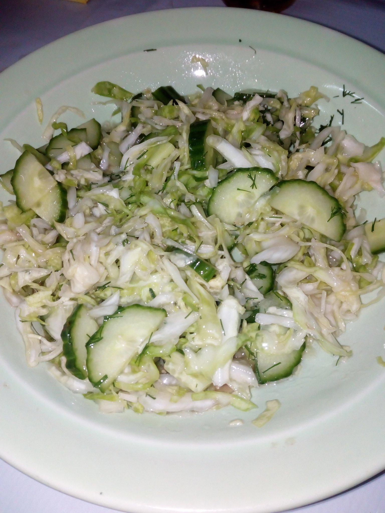 Зелева салата с краставица и копър