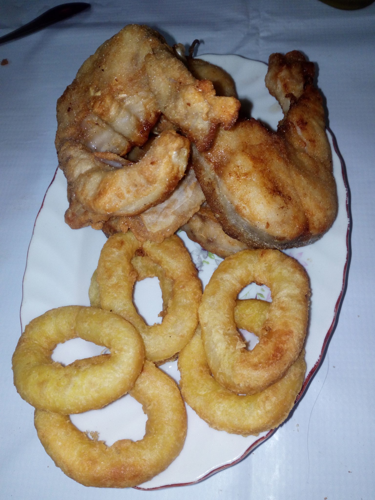Калмари (полуфабрикат) и пържен сом