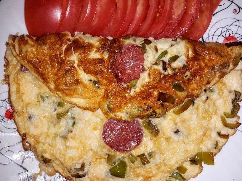 Вчерашния ми омлет и пробвах едно  китайско клипче, пак с яйца. Варено яйчено рулце.Добре,че сложих само три яйца, не ми хареса изобщо.