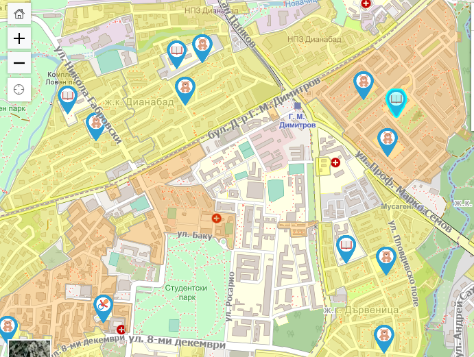 За пръв път отворих картата на 55. СУ. Не знам какво се очаква, като се има предвид, че в район "Студентски" се водят само 2 училища - 55 и 8. Прикачвам малко сравнение на картите на 55 и 8.