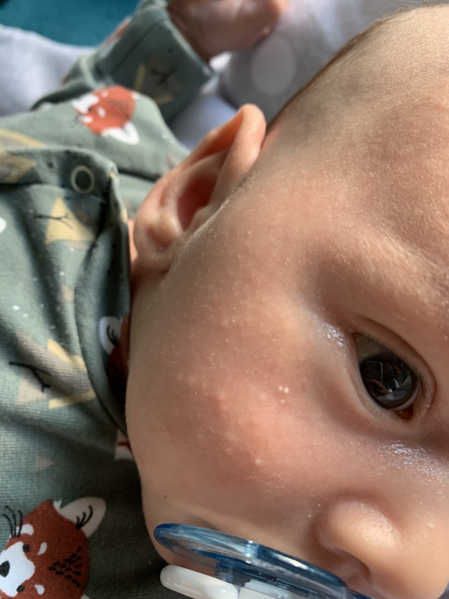 Здравейте, на бебчо му излязоха тези пъпчици по лицето. На 40 дни е. Притесняват ме тези двечките белите, дали да се консултирам с педиатъра?
