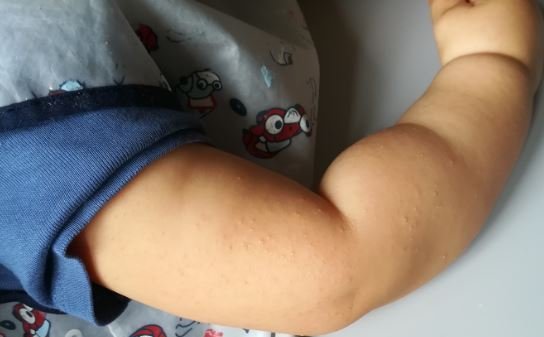 от доста време не съм писала в темата, но ви следя, когато имам повече време. Тук съм с въпрос и молба за съвет. Синът ми вече е на годинка и месец, повече от месец му излизат пъпчици по ръчичките и бузките, изчезват за момент, после пак се появяват. Консултирах се с педиатърката и според нея няма за какво да се притеснявам, било нормално. Аз обаче не съм на това мнение и искам да се допитам до специалист, за да съм сигурна, че всичко е наред. Последните два дни пъпчиците се увеличиха доста, не съм му давала нищо ново за ядене. Преди една семица му дадох питчици, в които имаше белтък, но той от преди това си има пъпчиците, така че не мисля, че се е повлиял от него. Глутен въведох около 8-ми месец по едномесечната схема и нямаше никакви реакции. Чудя се дали да посетим алерголог, или дерматолог. Прикачвам снимки, за да ме насочите какво би могло да бъде и какъв лекар е по-добре да посетя. Към момента клоня към алерголог и мисля да се обадя на д-р Златко Димитров в Токуда.