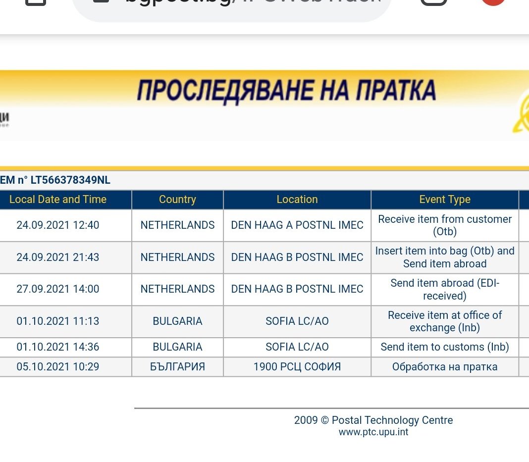 Ето ме отново. От днес състоянието на пратката ми е ето това: