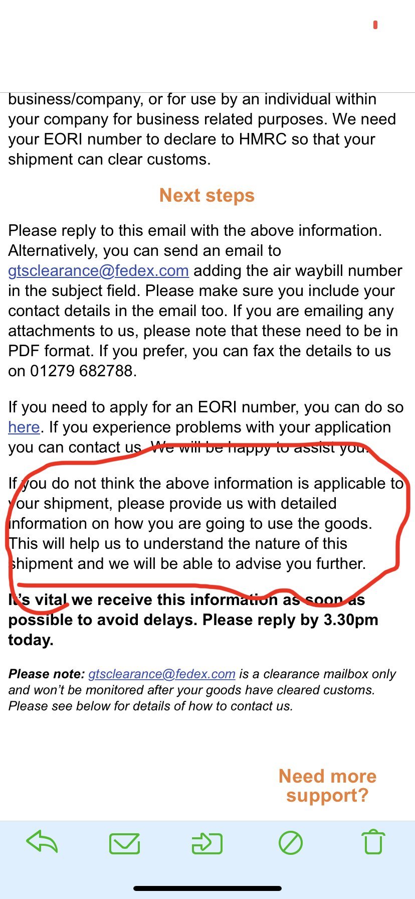 Още с първия имейл за искане на ЕОРИ изпратих в отговор платежен  документ и скрийншот на поръчката. Заради този абзац в имейла. Дали е възможно да е освободена заради това?