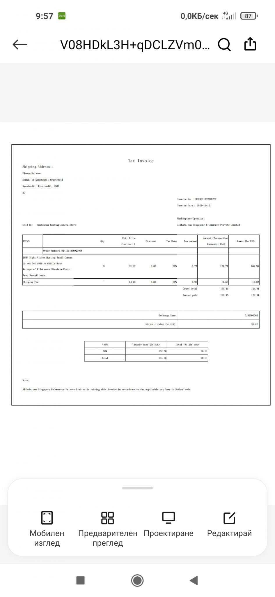 Направих поръчка от Алиекспрес като в цената е включено ДДС сега искат да ми начислят отново.Какво мога да направя.