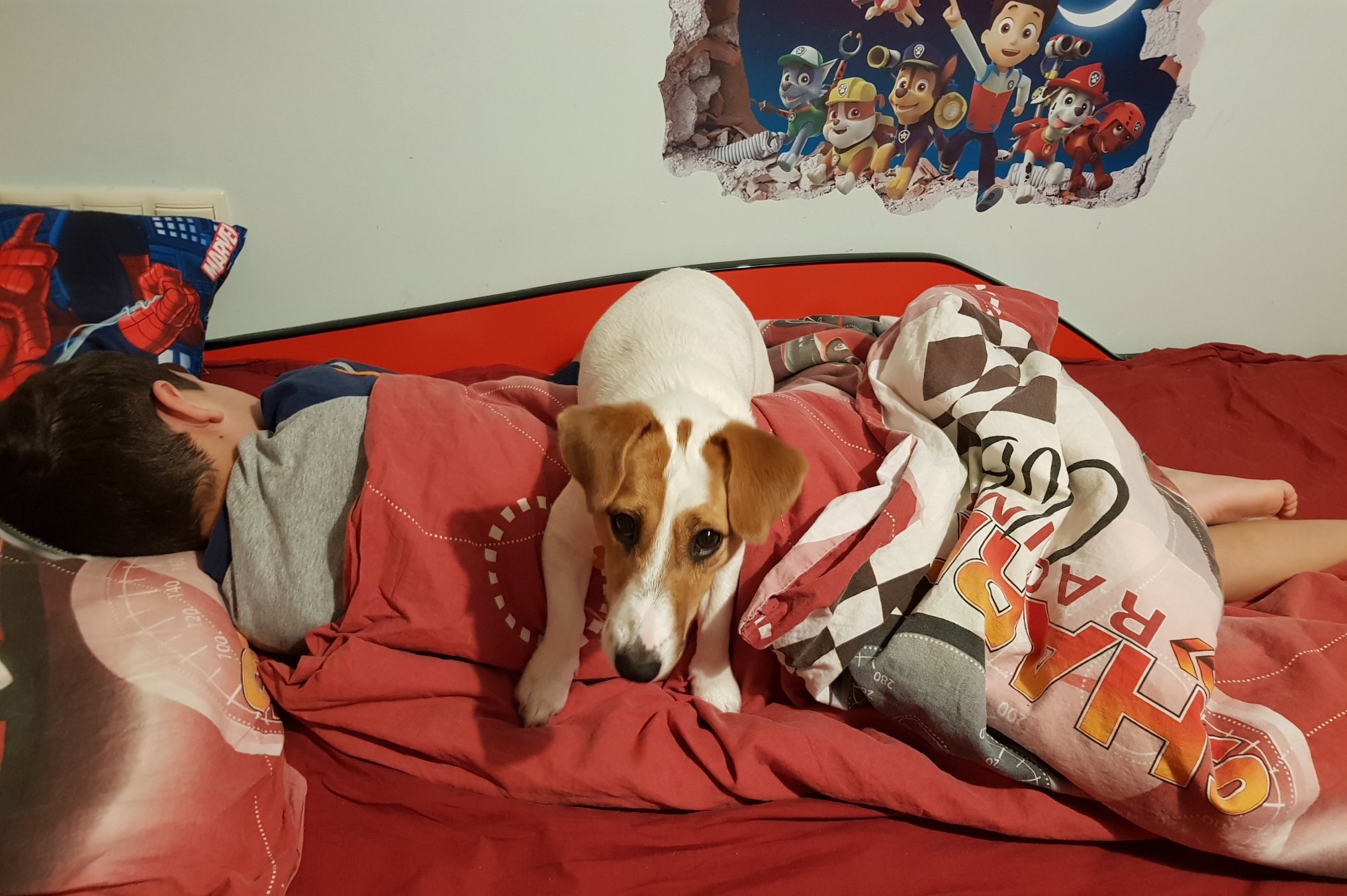 Томас така спи върху мен и ми се струва, че тежи цял тон, а е 6 кг.