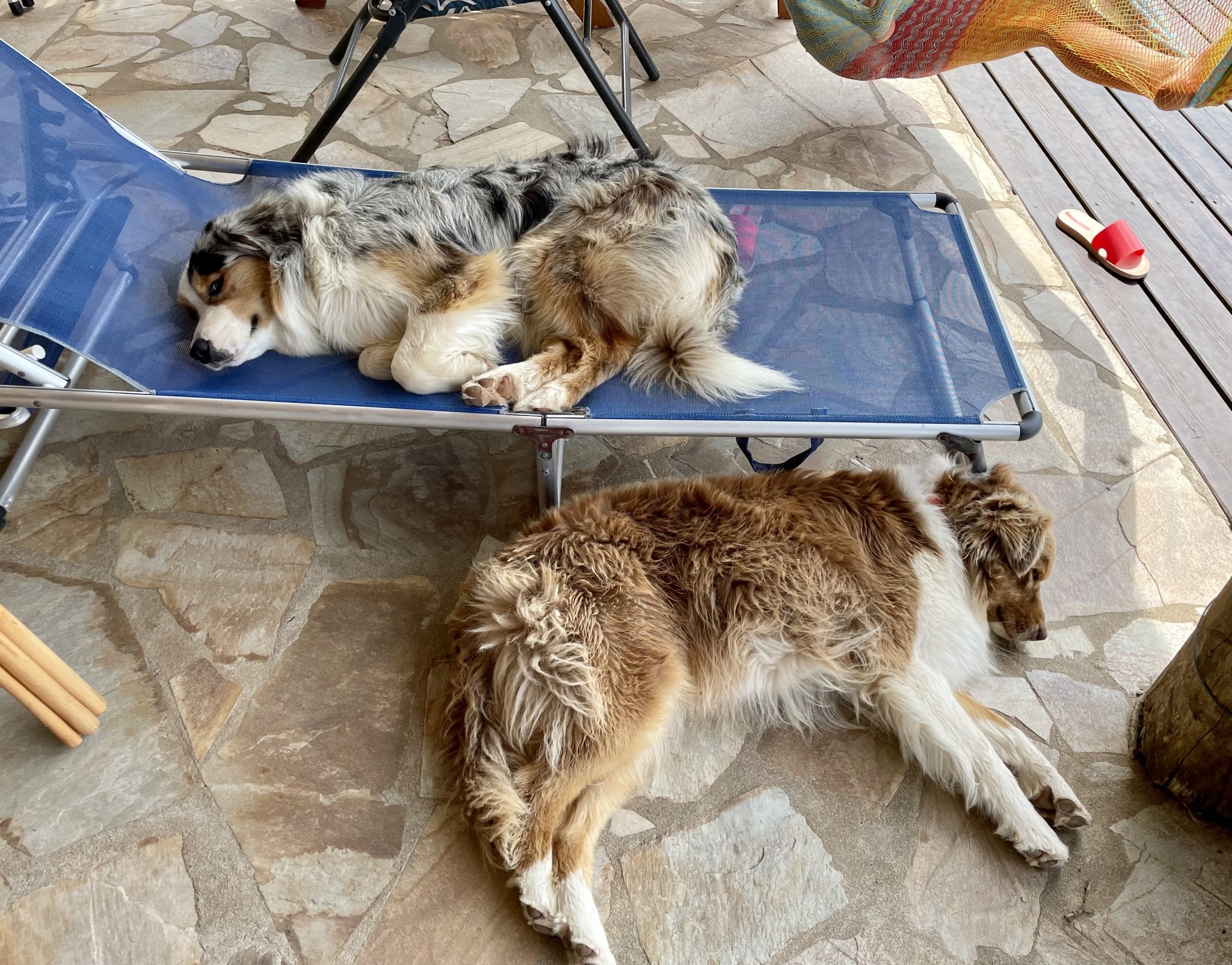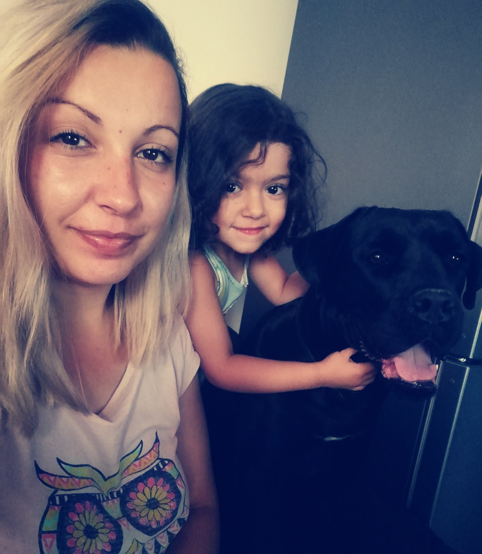 Вали като из ведро, духа, пригърмява, един луд кара АТВ, куче си е опряло главата на рамото му, а шантавата жена отзад е стиснала кучето да не падне, пък то е над 30-тина кила! В резултат на стискането ръката ме боля седмица, а кракът, на който си беше стоварил лапата, ми беше надран и син. И никакви самостоятелни разходки не му се полагат вече на Лео!