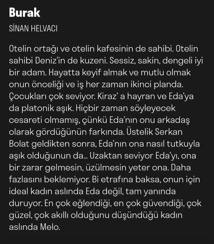 В сайта на Fox са добавили информация за новите герои. За Бурак, Керем и Дениз намерих и превод на английски, но за другите не. Нямам възможност да преведа на български, тъй като съм от телефона и не ми е удобно, ако на някой му се занимава може да пробва.🤗