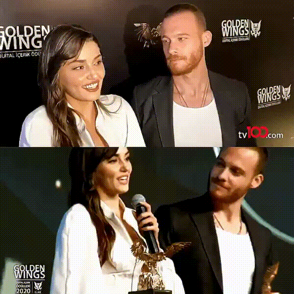 нашите в 41,54мин. за тези на които не им се глада "баластрата" преди това. Очарована съм и от двамата, леко смутени, много балансирани, много влюбени и характерните им - мекота и изящество от страна на Ханде општваща се да тушира емоционалните изблици на непорасналото момче Керем и Керем - джентълмен. Ще Ви, направи впечатление - на втората площадка от слизането им по стълбите, Керем и предлага свитата си в лакътя ръка, с жест и една две думи се разбраха за по-неангажиращо поведение. Баланса по време на интервюто въпреки, че бяха провокирани. Оставането на Керем след интервюто, предоставяйки и възможността за спокойно оттегляне, придърпването на стола и в залата и чар, който пръскаха повреме на самото им награждаване. Любов!:revolving_hearts: