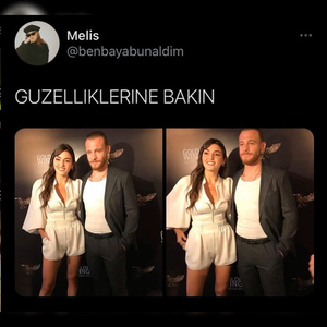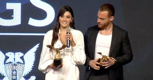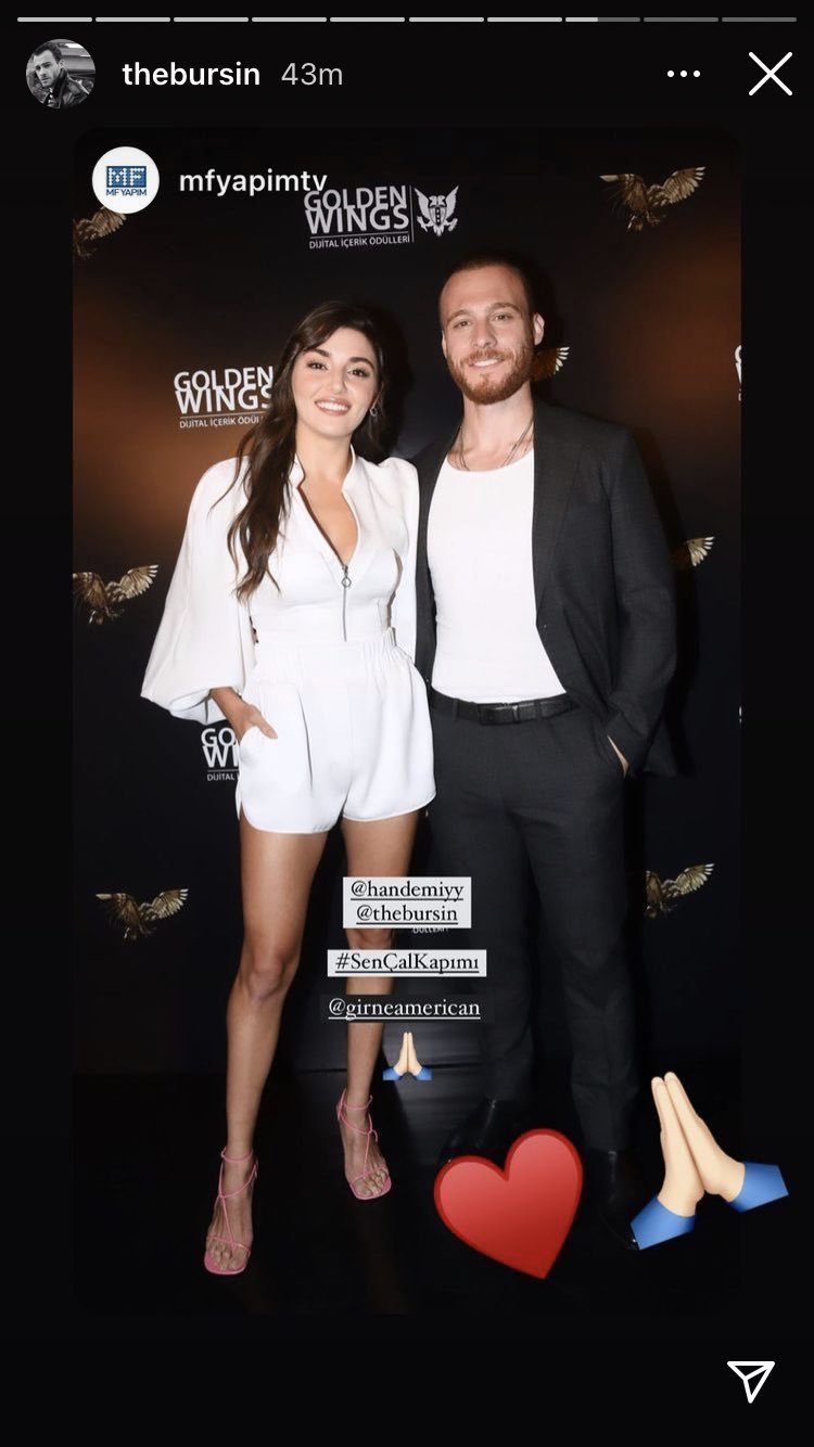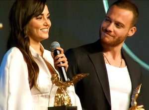 Керем: Нямам канал в YouTube, изглежда не съм блогър, нямам идея защо съм тук... Хахаха... Шега. Искам да благодаря на продуцента, нашия екип и скъпата ми партньорка. Ако не беше тя, нямаше да съм тук.