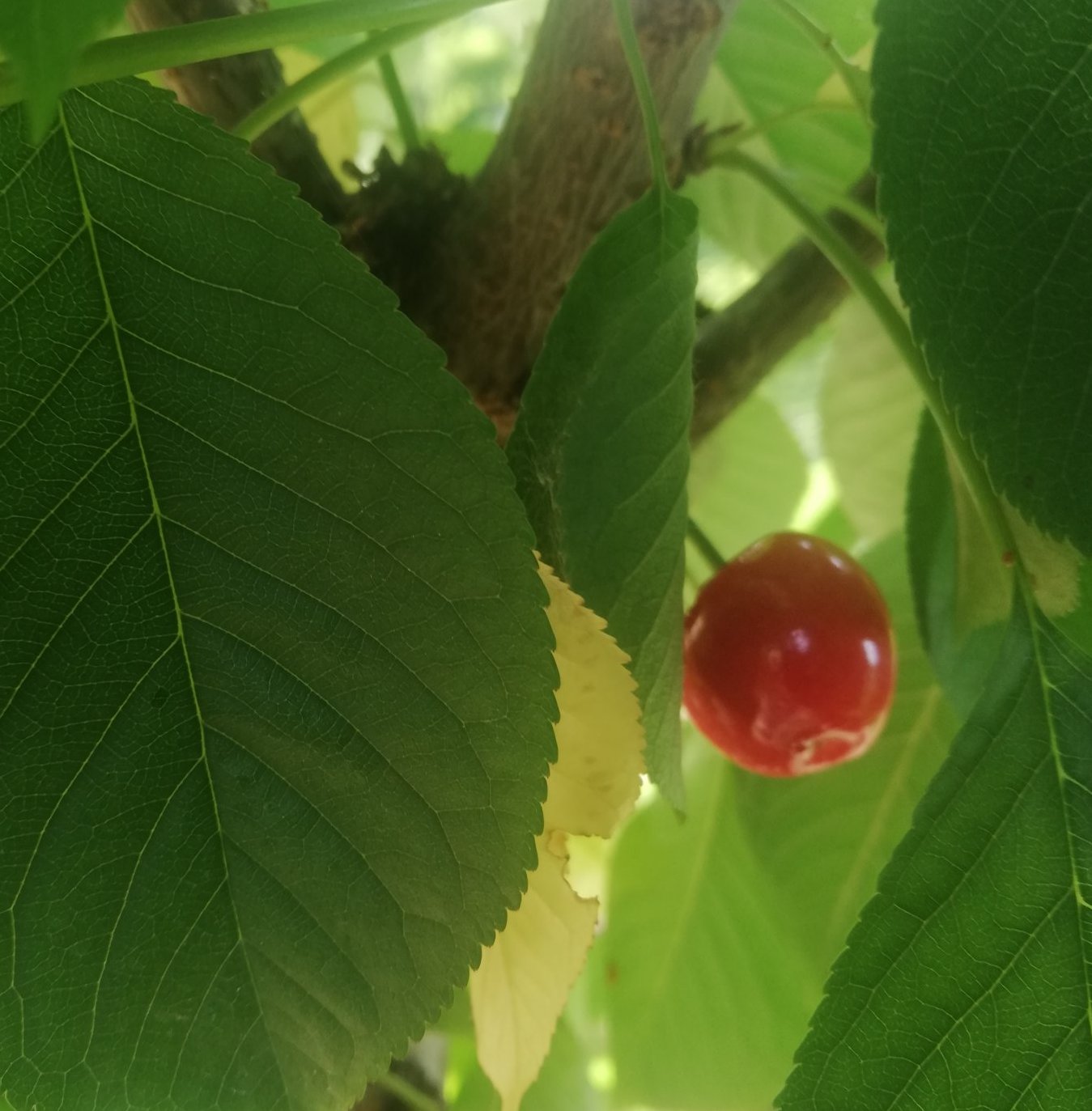 А днес забелязах, че черешата, която засадих миналата година е родила  черешка.