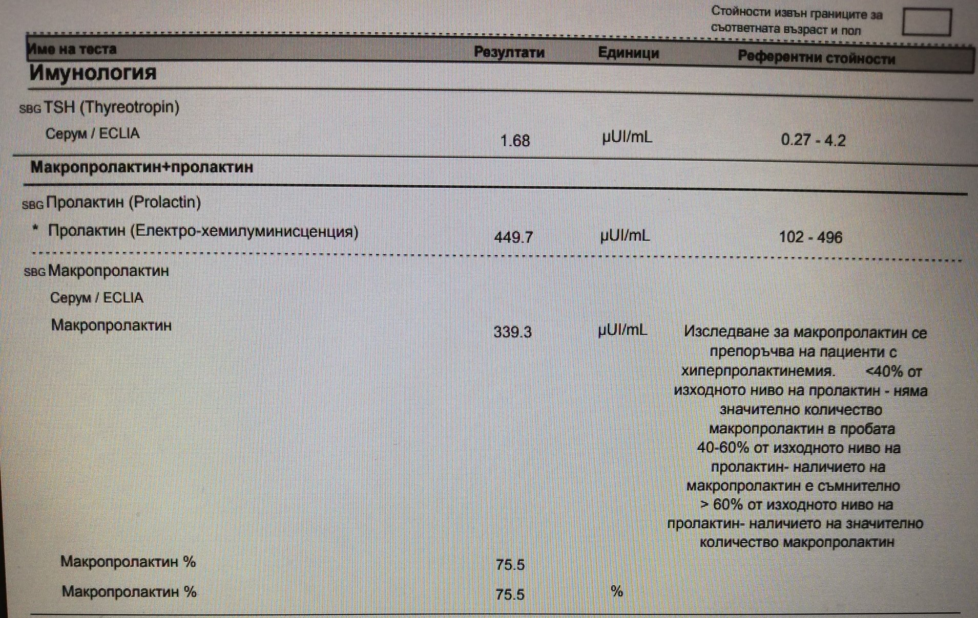 Пролактин - 953.3 при горна 496.