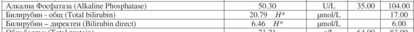 Прикачвам снимка на Билирубина