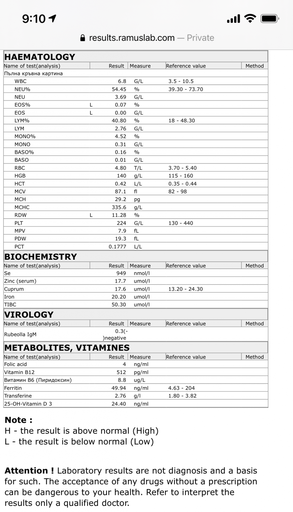 Провери Хомоцистеин, В6, Желязо, Феритин, Биотин, Хемоглобин, Трансферин, ЖСК... Цинк, Селен, Мед