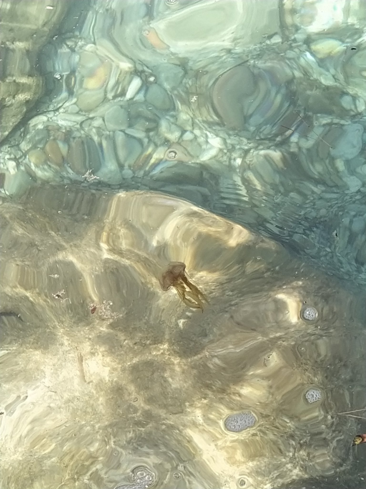 Обаче от водата много бързо ни изкараха ето тези приятелки и техните роднини . За пръв път виждам медузи на гръцкото море, а тия жилят неприятно.